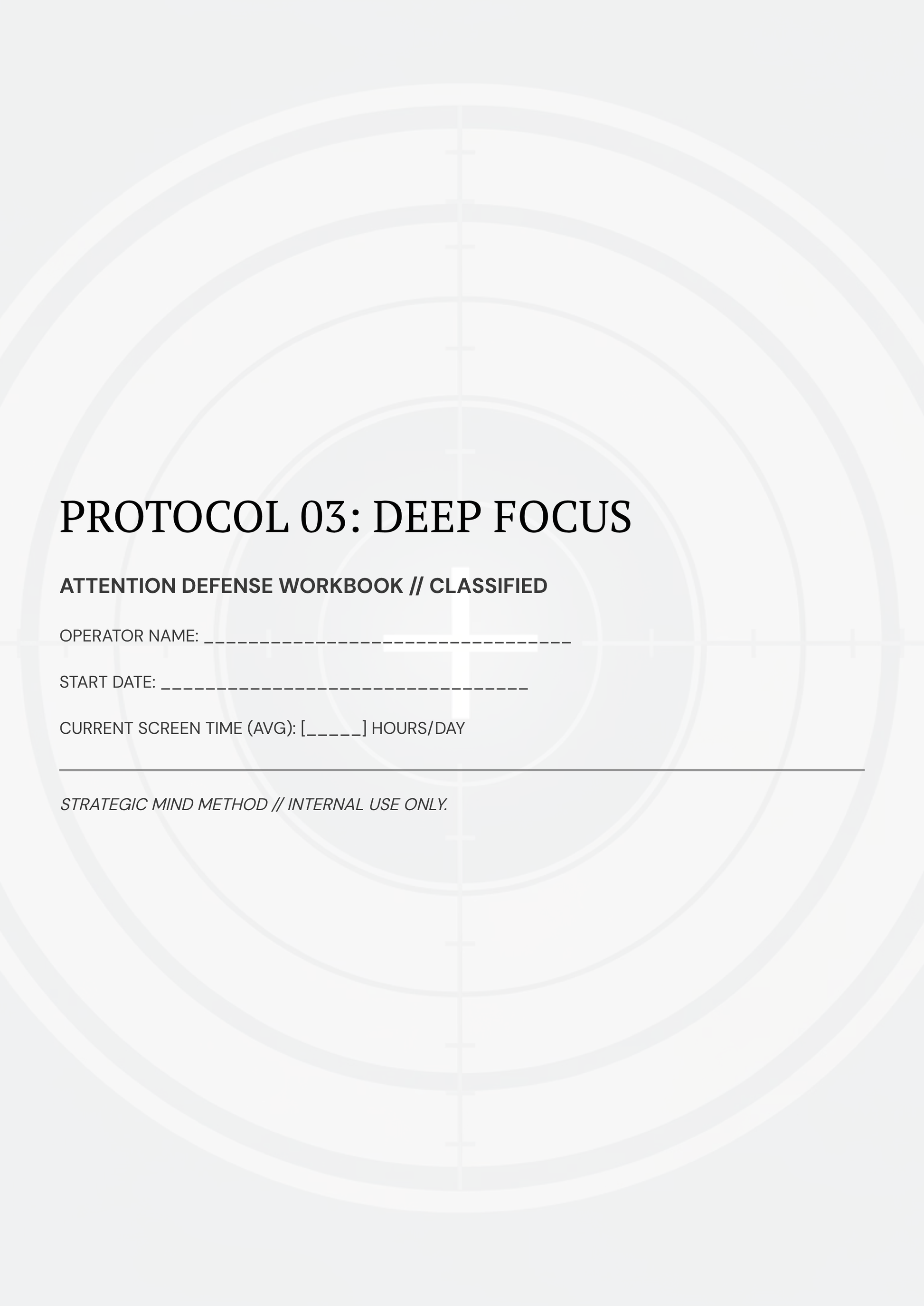 ✅ PROTOCOL 03: FOCUS WORKBOOK (PDF) — Your operational log containing: