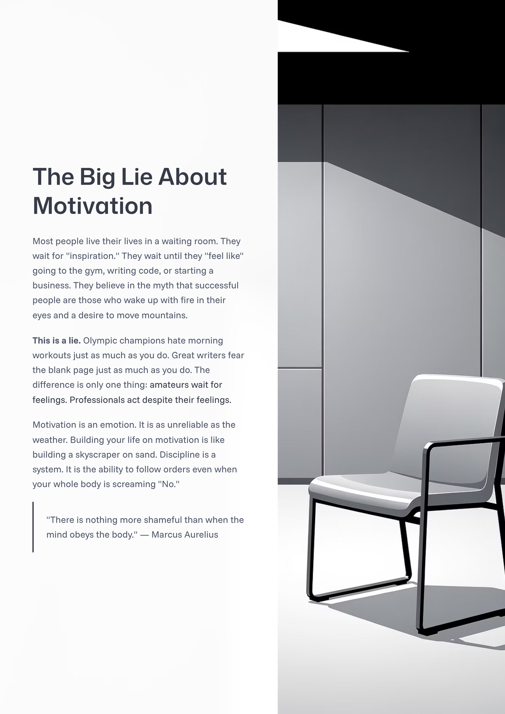 Most people live their lives in a waiting room. You wait for "inspiration" to hit before you write code, hit the gym, or start that business. You believe the myth that elite performers wake up with fire in their eyes every day.